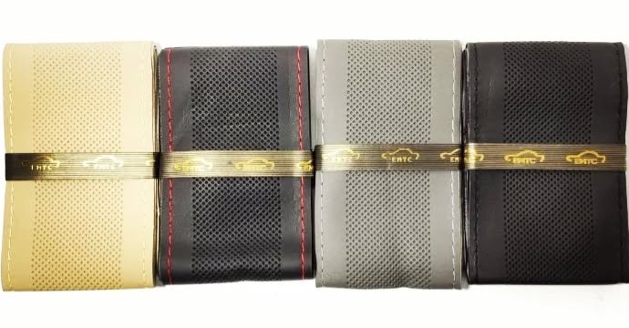 دور فرمان دوختی چرم اصل برند emtc رنگ بندی مشکی؛ مشکی نخ قرمز ؛ کرم